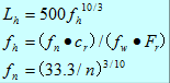 ,式中Lh是额定寿命(h),fh是寿命系数,fw是载荷系数,Fr是轴承载荷(N),n是转速(r/min),cr是轴承的额定载荷(N)。