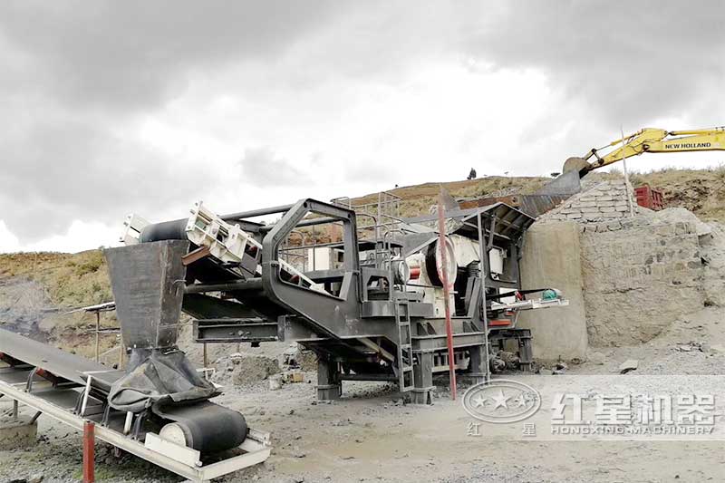 移动式硬石料碎石制沙现场